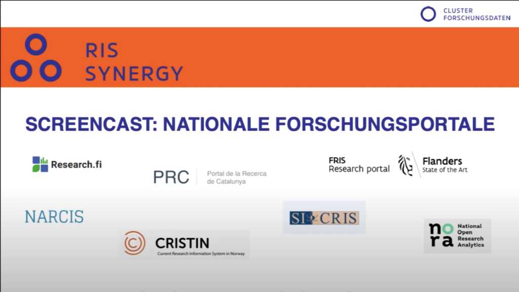 Auf Basis der Recherchen zu anderen Forschungsportalen wurde ein Screencast produziert, der sieben Portale europäischer Länder vorstellt und einzelne Features vergleicht. Ziel des Videos ist es, in nur 15 Minuten einen breiten Eindruck davon zu vermitteln, wie nationale oder überregionale Forschungsportale in anderen Ländern definiert und verwirklicht wurden.