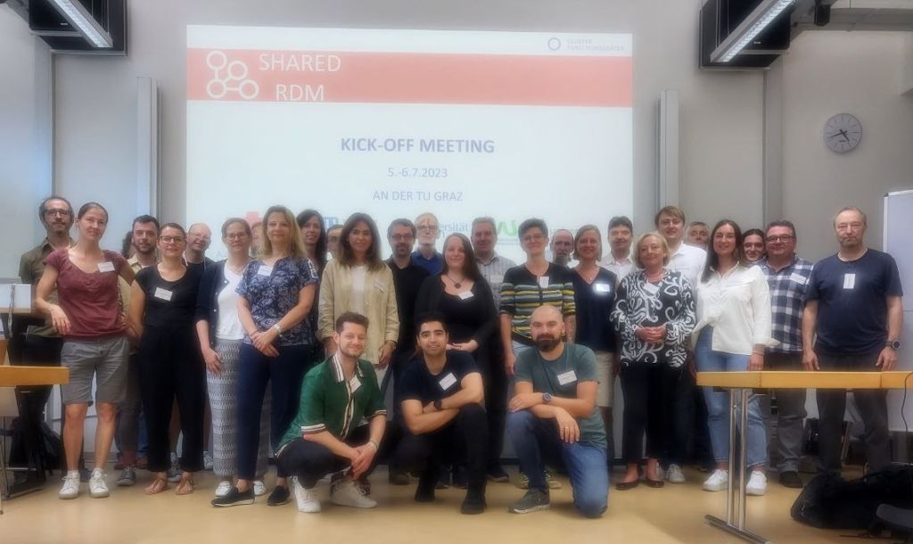 Am 5. und 6. Juli fand an der Technischen Universität Graz der offizielle Kick-Off des Projekts Shared RDM Services and Infrastructure statt. Das Projekt Shared RDM Services and Infrastructure zielt darauf ab, einen Rahmen zu schaffen, um ausgewählte Tools und Infrastrukturen im Bereich RDM als Shared Services für österreichische Universitäten und Forschungseinrichtungen anzubieten.